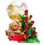 Product HighlightsArreglo en carreta, 6 rosas importadas, astromelias, imperico y peluche de 30 cm en hermosa carreta decorada. Tamaño: Aprox. 50…